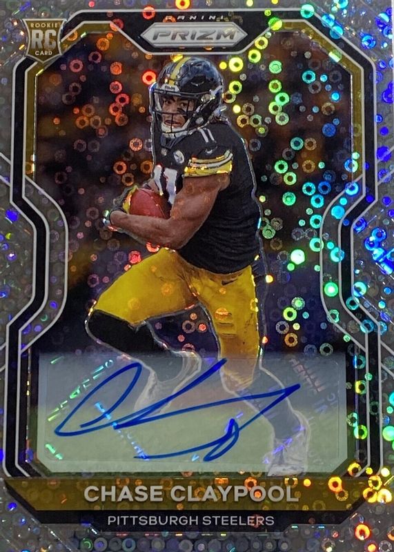 This card is 1 of 61 Chase Claypool's card variations in the 2020 Prizm set being tracked by Sports Card Investor, including Base, Disco, Green, Lazer, and Light Blue.