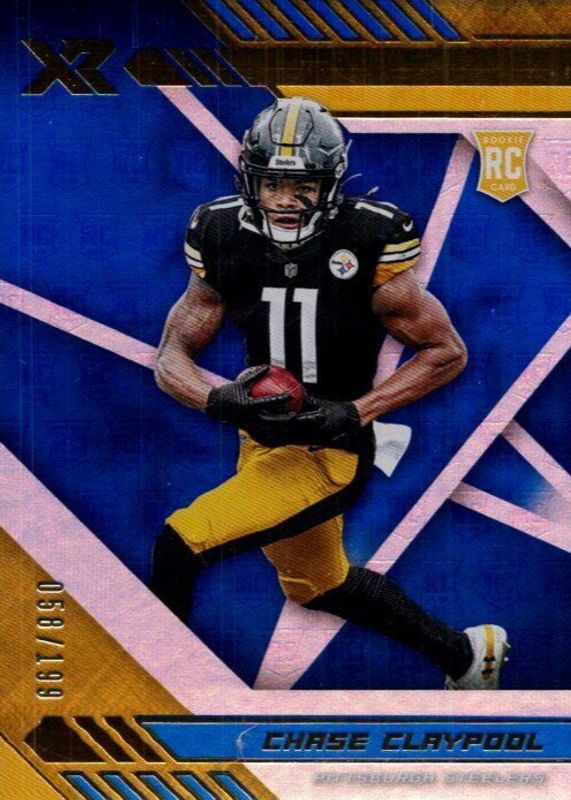 This card is 1 of 10 Chase Claypool's card variations in the 2020 XR set being tracked by Sports Card Investor, including Base, Red /249, Orange /99, White /75, and Teal /49.