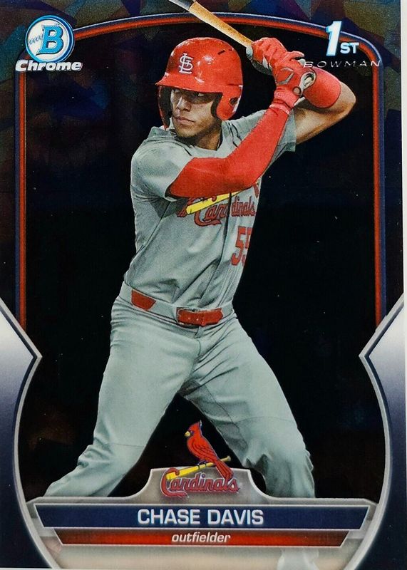 The Chase Davis 2023 Bowman Draft Sapphire Edition #BDC-48 Chrome - Black /10 (1st) card in Raw condition has not changed in price in the last 30 days and was last sold for $75.00 .