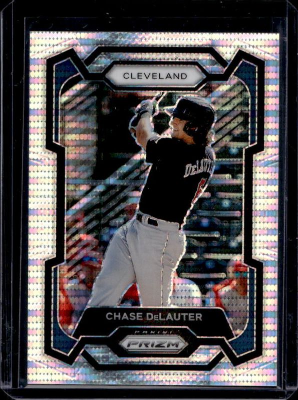 The Chase DeLauter 2024 Prizm #30 Pulsar /499 card is 1 of 38 Chase DeLauter's card variations in the 2024 Prizm set being tracked by Sports Card Investor, including Base, Blue Ice, Green, Green Ice, and Pink Ice.