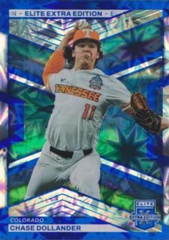 The Chase Dollander 2023 Elite Extra Edition #41 Blue /16 card is 1 of 103 Chase Dollander's card variations in the 2023 Elite Extra Edition set being tracked by Sports Card Investor, including #41 Base, #167 Base, #167 Pink, #41 Pink, and #41 Signatures.