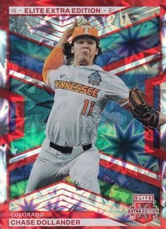The Chase Dollander 2023 Elite Extra Edition #41 Red /5 card is 1 of 103 Chase Dollander's card variations in the 2023 Elite Extra Edition set being tracked by Sports Card Investor, including #41 Base, #167 Base, #167 Pink, #41 Pink, and #41 Signatures.