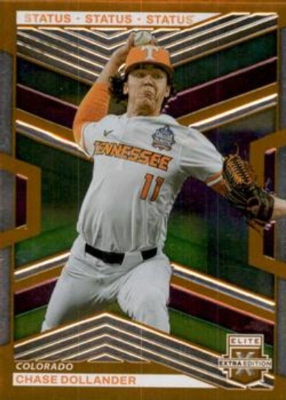 The Chase Dollander 2023 Elite Extra Edition #41 Status Orange /275 card is 1 of 103 Chase Dollander's card variations in the 2023 Elite Extra Edition set being tracked by Sports Card Investor, including #41 Base, #167 Base, #167 Pink, #41 Pink, and #41 Signatures.