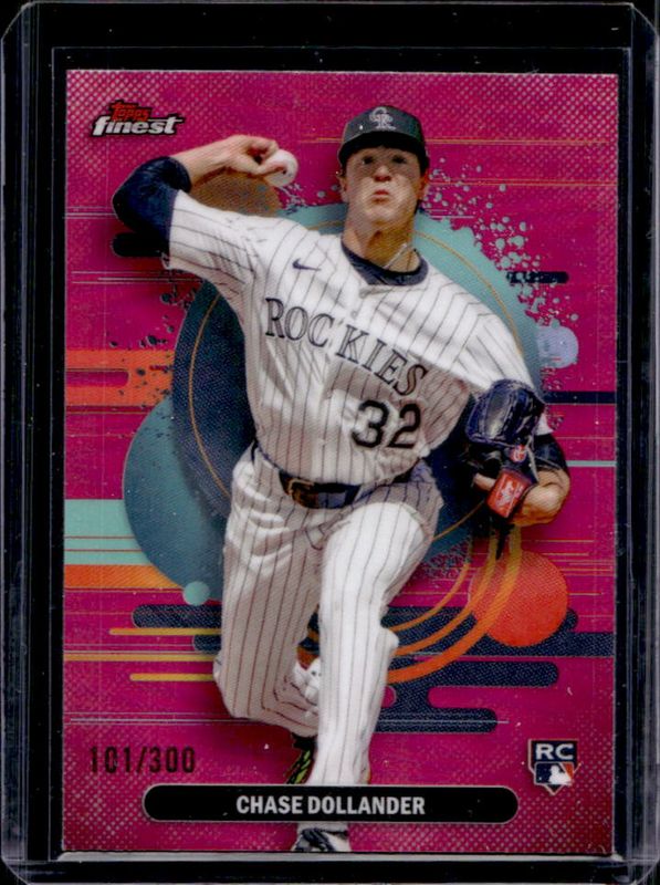 The Chase Dollander 2025 Topps Finest #160 Base Uncommon - Magenta Refractor /300 Rookie card is 1 of 65 Chase Dollander's card variations in the 2025 Topps Finest set being tracked by Sports Card Investor, including Base Common, Base Common - Oil Spill Refractor, Base Common - Refractor, Base Common - X-Fractor, and Base Rare.