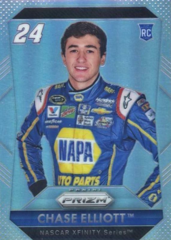 The Chase Elliott 2016 Prizm NASCAR #24 Silver Rookie card in Raw condition has moved down -$8.49 (-50.0%) in the last 30 days and was last sold for $8.50 .