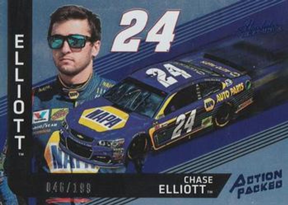 Chase Elliott 2017 Absolute NASCAR #AP14 Action Packed Spectrum Blue /199 RAW Price Guide