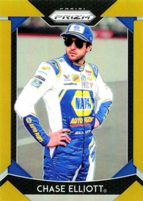 The Chase Elliott 2019 Prizm NASCAR #7a Gold /10 card is 1 of 99 Chase Elliott's card variations in the 2019 Prizm NASCAR set being tracked by Sports Card Investor, including #7a Base, #58 Base, #84 Base, #65 Base, and #71 Base.