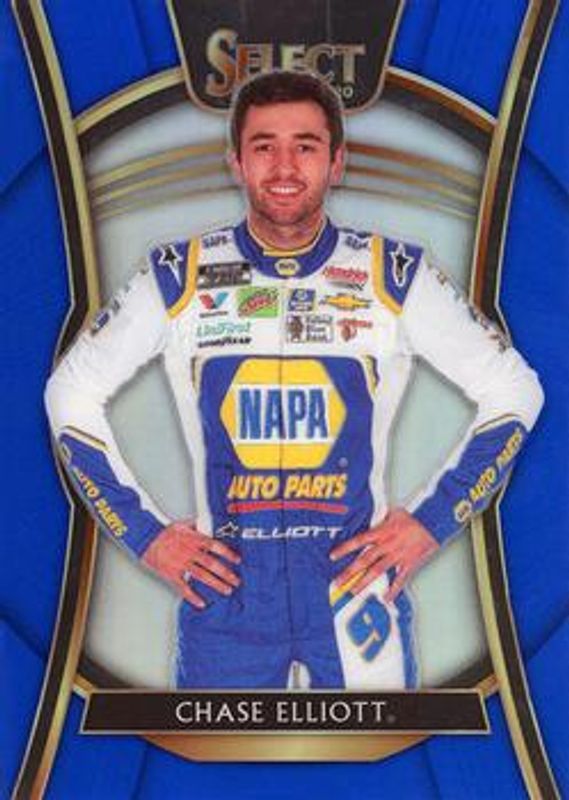 The Chase Elliott 2020 Chronicles NASCAR #4 Select Blue /199 card is 1 of 160 Chase Elliott's card variations in the 2020 Chronicles NASCAR set being tracked by Sports Card Investor, including Base, Blue /199, Red /99, Purple /25, and Gold /10.