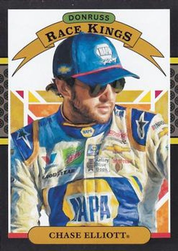 The Chase Elliott 2020 Donruss NASCAR #1 Base card is 1 of 153 Chase Elliott's card variations in the 2020 Donruss NASCAR set being tracked by Sports Card Investor, including #99 Base, #28 Base, #193 Base, #135 Base, and #1 Carolina Blue.