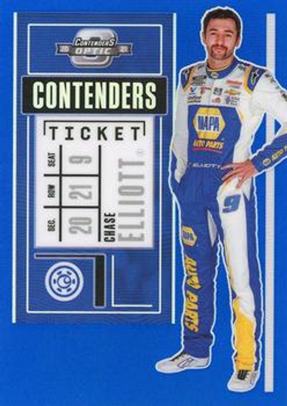 Chase Elliott 2021 Chronicles NASCAR #8 Contenders Optic - Blue /199 RAW Price Guide