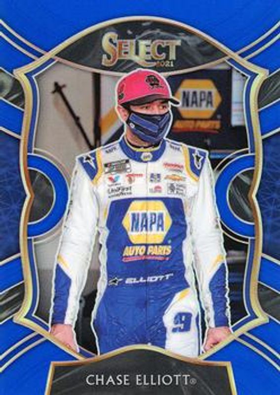 The Chase Elliott 2021 Chronicles NASCAR #9 Select - Blue /199 card is 1 of 166 Chase Elliott's card variations in the 2021 Chronicles NASCAR set being tracked by Sports Card Investor, including Base, Blue /199, Red /99, Purple /25, and Gold /10.