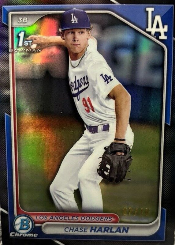 This card is 1 of 50 Chase Harlan's card variations in the 2024 Bowman Draft set being tracked by Sports Card Investor, including Chrome (1st), Chrome - Bubble Gum (1st), Chrome - Lunar Glow Refractor (1st), Chrome - Peanuts (1st), and Chrome - Pearl Refractor (1st).