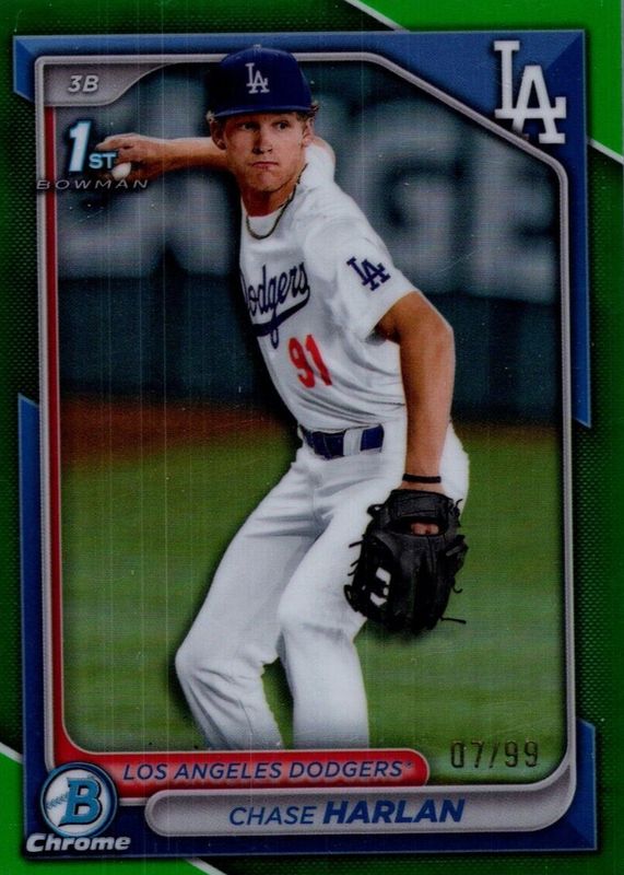 2024 Topps Bowman Draft Chrome Green #BDC-96 Chase Harlan 1st 38/99 Dodgers hd