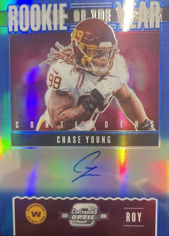 2020 Contenders Optic Chase Young RC ROOKIE OF THE YEAR CONTENDERS Auto Blue /75