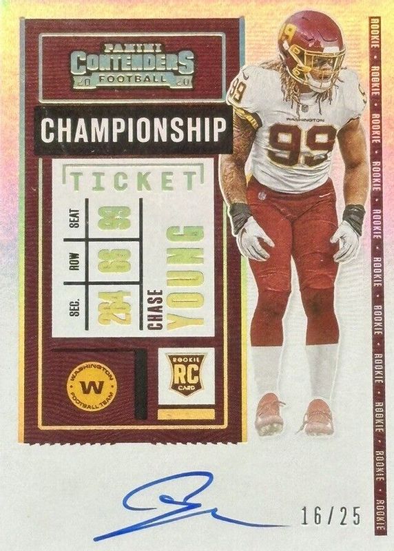 Auctions Ending Soon for Chase Young 2020 Contenders #102 Rookie Ticket Auto Variation - Championship Ticket /25 RAW