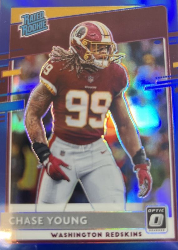The Chase Young 2020 Donruss #P-316 Optic Preview - Blue /125 Rookie card in Raw condition has not changed in price in the last 30 days and was last sold for $0.99 .