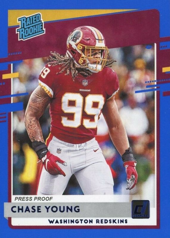 2020 DONRUSS #316 CHASE YOUNG BLUE PRESS PROOF RATED ROOKIE WASHINGTON REDSKINS