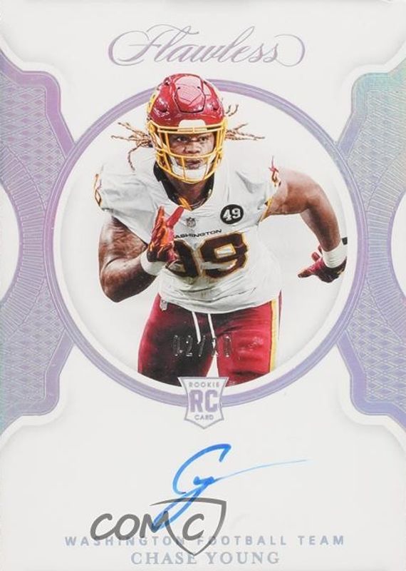 The Chase Young 2020 Flawless #FRS-CYO Flawless Rookie Signatures - Silver (/20) card in Raw condition has not changed in price in the last 30 days and was last sold for $56.00 .