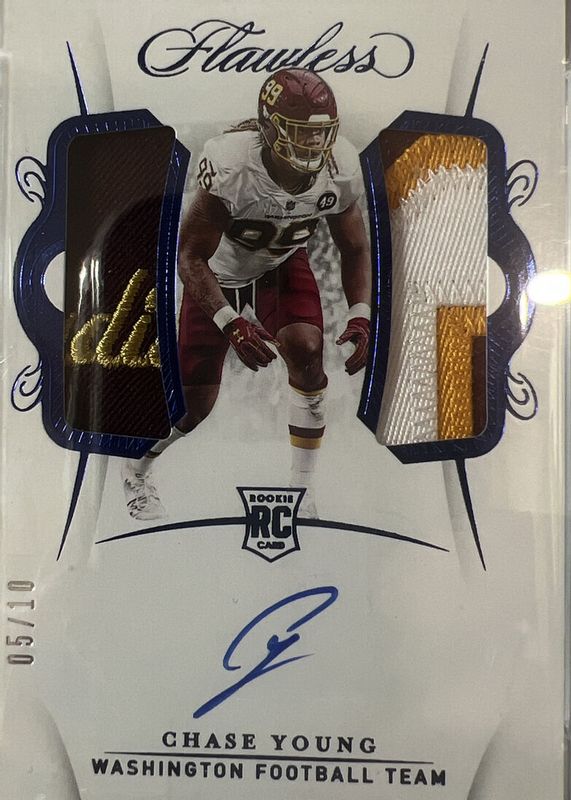 Auctions Ending Soon for Chase Young 2020 Flawless #RDPA-CY Rookie Dual Patch Auto - Sapphire /10 RAW
