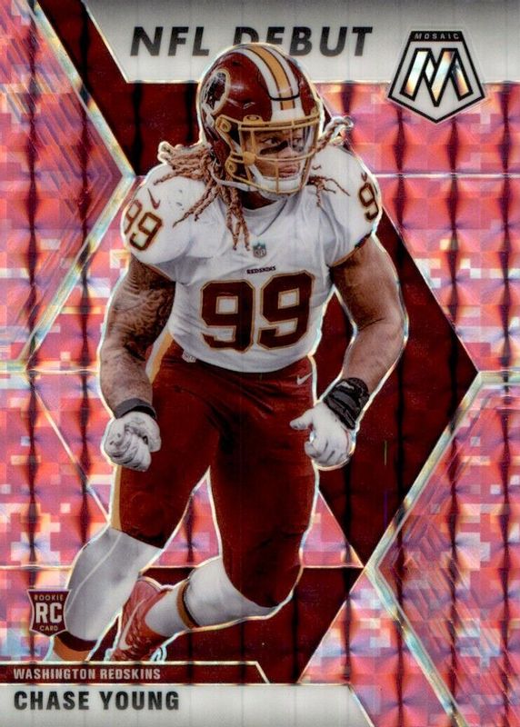 The Chase Young 2020 Mosaic #272 NFL Debut - Pink Camo Rookie card in Raw condition has not changed in price in the last 30 days and was last sold for $1.40 .