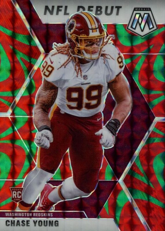 The Chase Young 2020 Mosaic #272 NFL Debut - Reactive Green Rookie card in Raw condition has not changed in price in the last 30 days and was last sold for $3.00 .