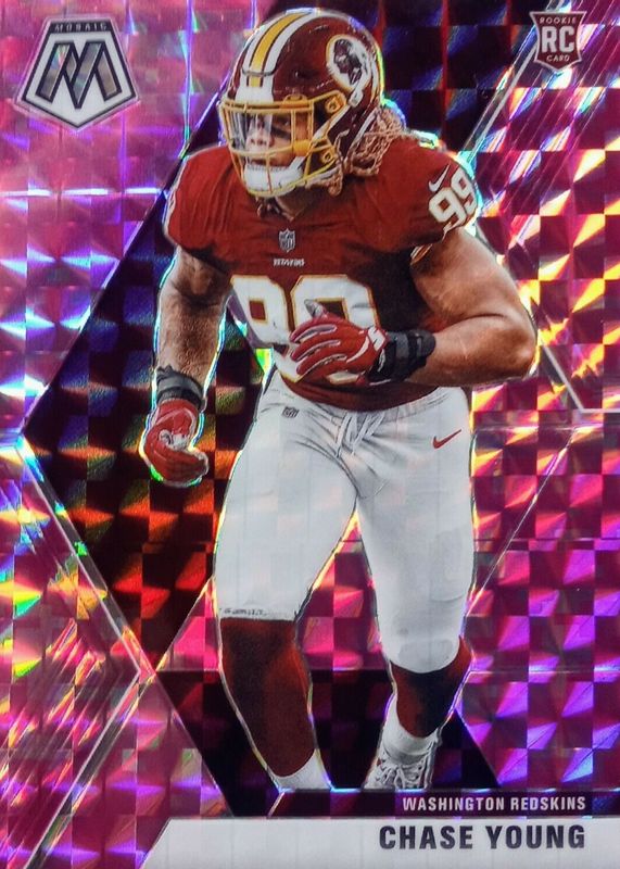 The Chase Young 2020 Mosaic #202 Pink Camo Rookie card in Raw condition has moved down -$0.04 (-3.1%) in the last 30 days and was last sold for $1.25 .