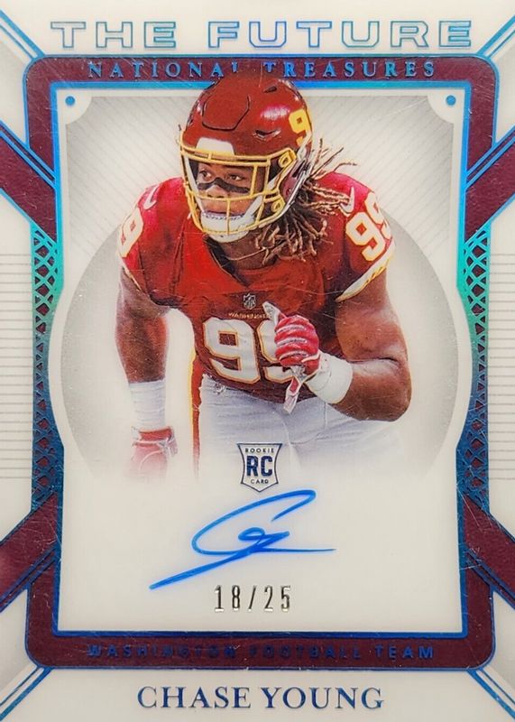 The Chase Young 2020 National Treasures #TF-CY The Future Autographs /25 Rookie card in Raw condition has not changed in price in the last 30 days and was last sold for $39.99 .