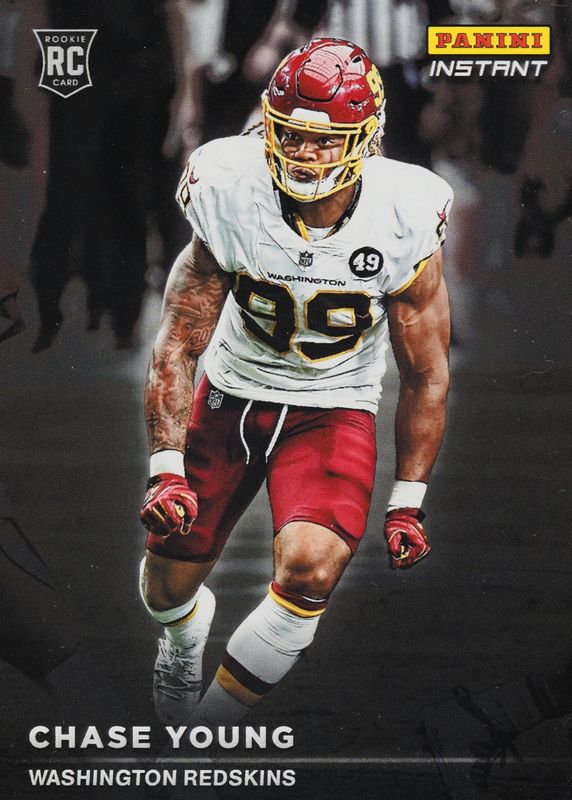 This card is 1 of 4 Chase Young's card variations in the 2020 Panini Instant set being tracked by Sports Card Investor, including Draft Night (/1247), Rated Rookie Retro /2044, and Black & White Rookies /518.