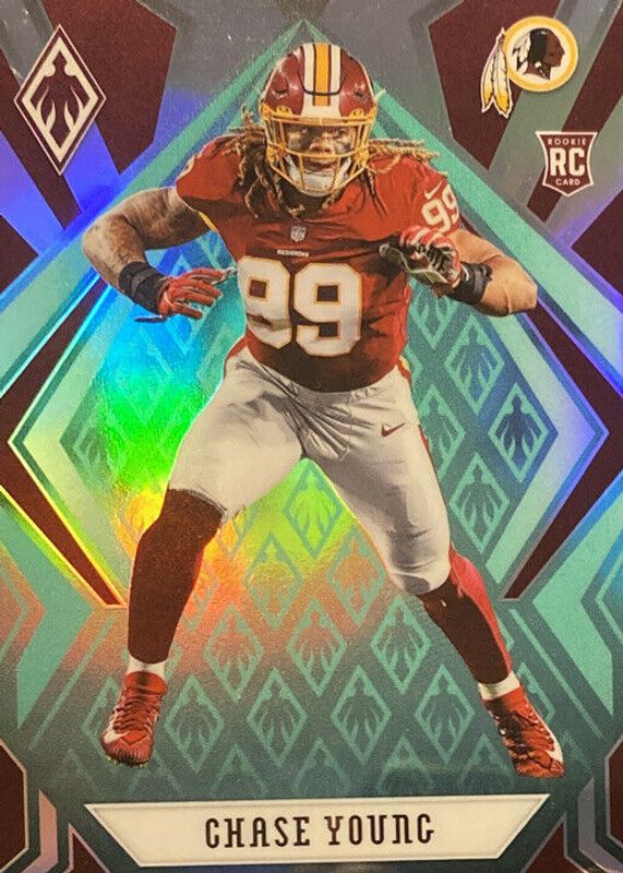 This card is 1 of 16 Chase Young's card variations in the 2020 Phoenix set being tracked by Sports Card Investor, including Base, Color Burst, Fire Burst, Silver, and Red /299.