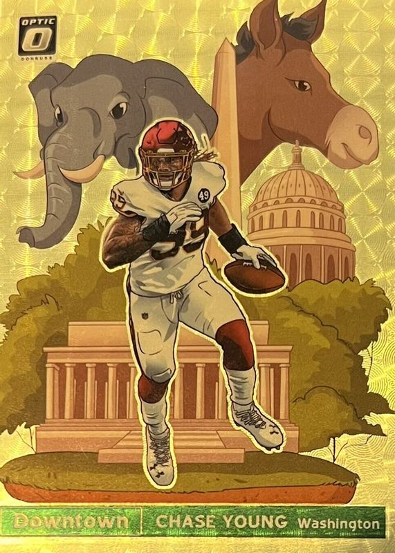 This card is 1 of 5 Chase Young's card variations in the 2021 Optic set being tracked by Sports Card Investor, including Downtown /(SSP), Downtown - Black Pandora /25, Downtown - Gold /10, and Downtown - White Sparkle /1.