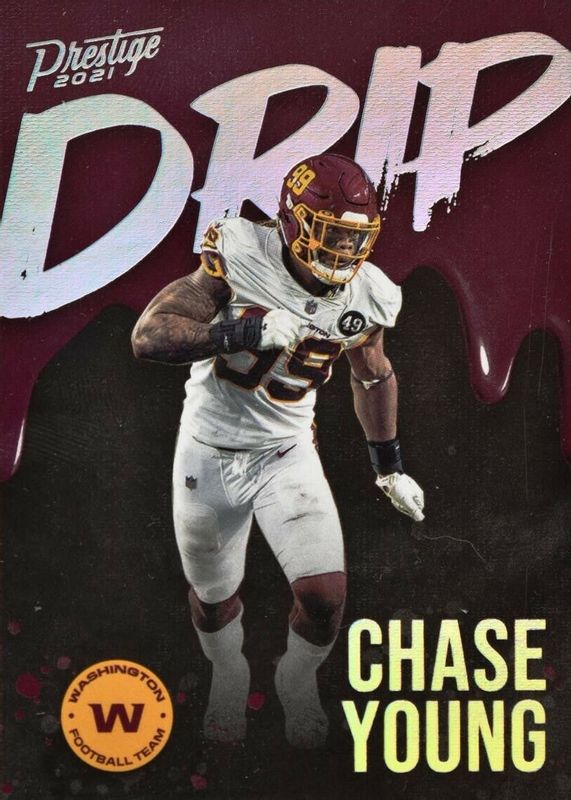 The Chase Young 2021 Prestige #ND-CY NFL Drip /(SSP) card in Raw condition has not changed in price in the last 30 days and was last sold for $15.99 .