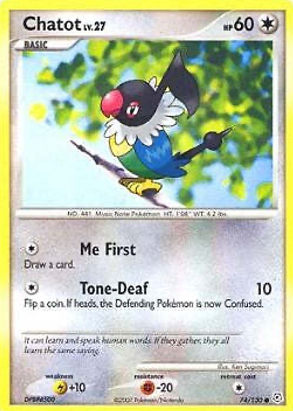 Pokemon Diamond & Pearl 74/130 Common Card - Chatot 74/130