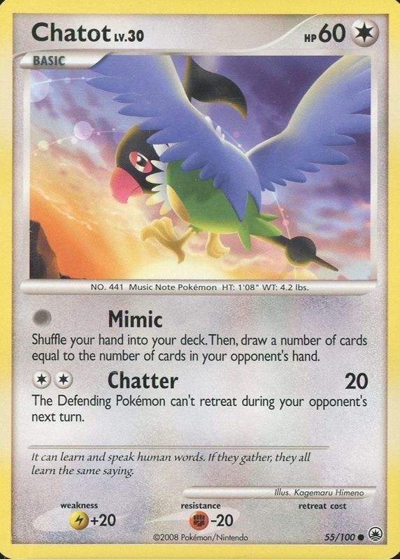 Chatot 2008 Diamond & Pearl: Majestic Dawn #055/100 Base RAW TCG (LIGHTLY PLAYED) Price Guide