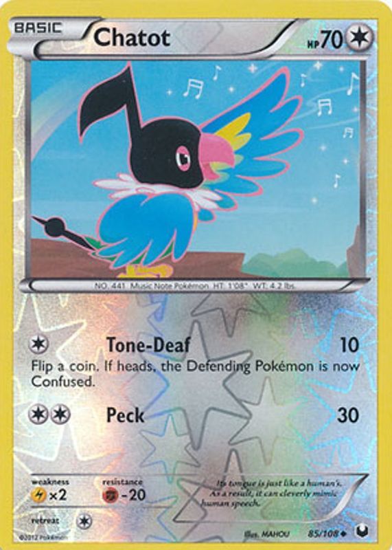 Chatot 2012 Black & White: Dark Explorers #085/108 Reverse Holo RAW TCG (LIGHTLY PLAYED) Price Guide