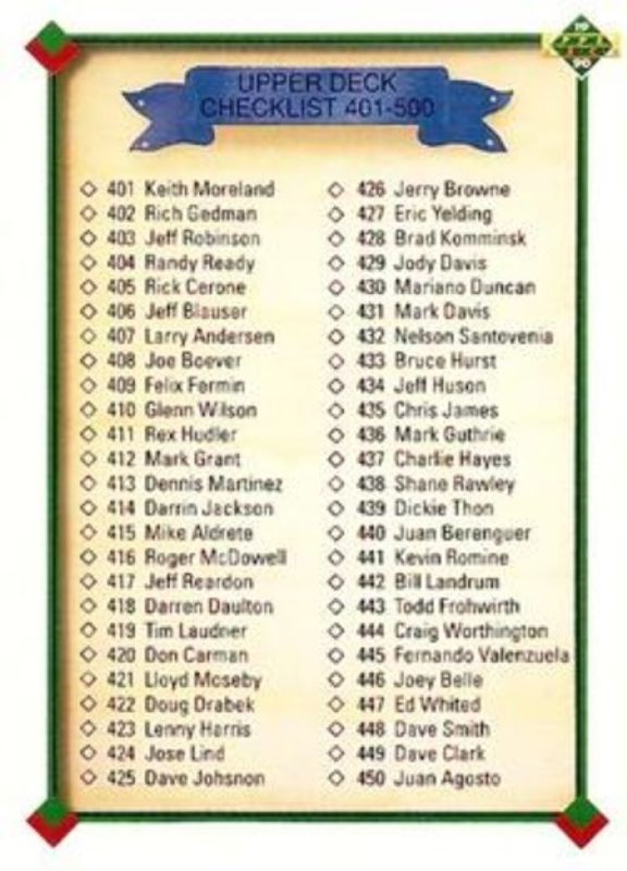 Checklist 1990 Upper Deck #500 Base RAW Price Guide