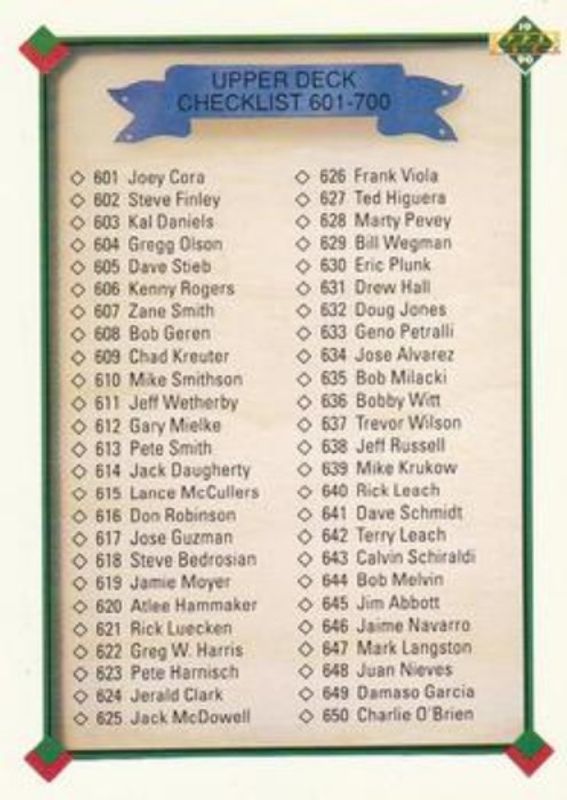 Checklist 1990 Upper Deck #700b Base RAW Price Guide