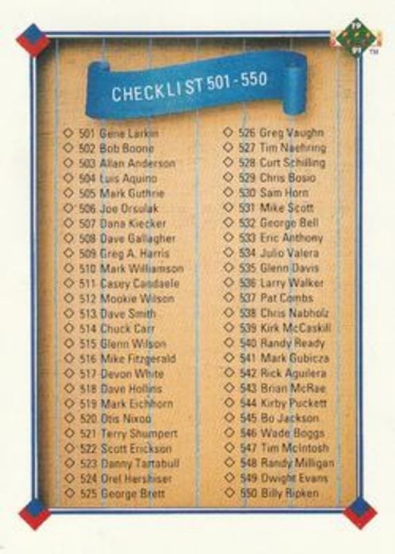 Checklist 1991 Upper Deck #600 Base RAW Price Guide