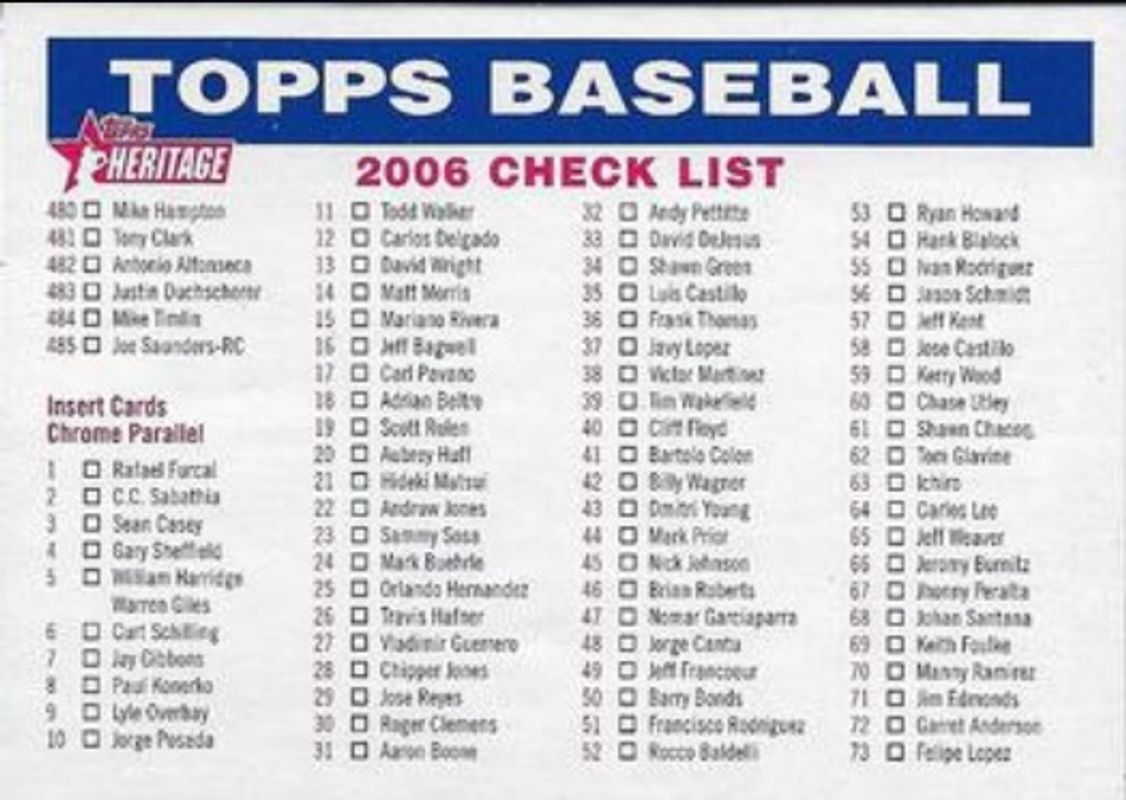 Checklist 2006 Topps Heritage #4 Checklists RAW
