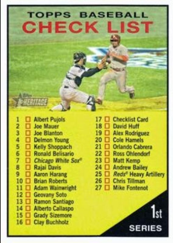 The Checklist 2010 Topps Heritage #17 Base card is 1 of 12 Checklist's card variations in the 2010 Topps Heritage set being tracked by Sports Card Investor, including #189 Base, #273 Base, #361 Base, #423 Base, and #437 Base.