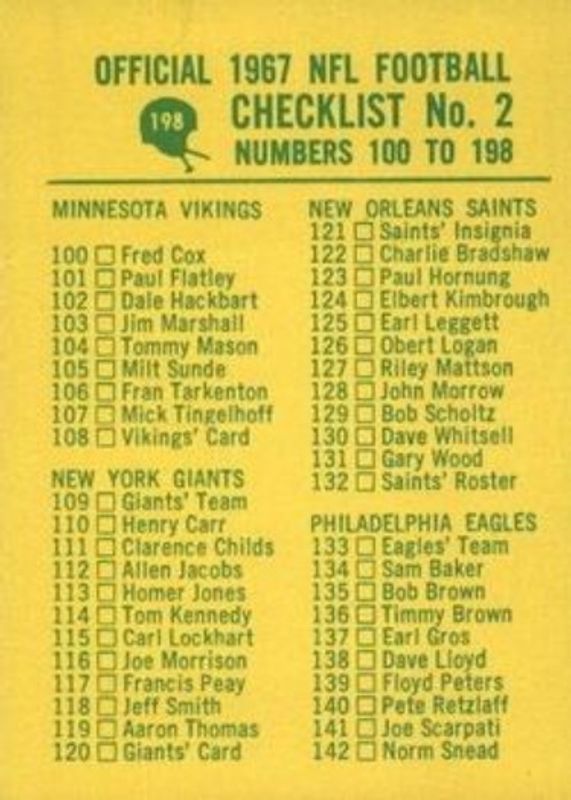 The Checklist 1967 Philadelphia #198 Base card is 1 of 2 Checklist's card variations in the 1967 Philadelphia set being tracked by Sports Card Investor, including Base.