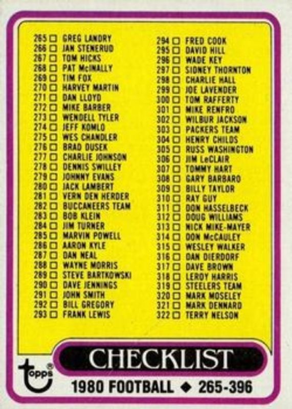 Checklist 1980 Topps #391 Base RAW Price Guide