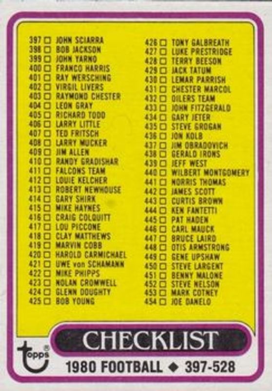 Checklist 1980 Topps #509 Base RAW Price Guide