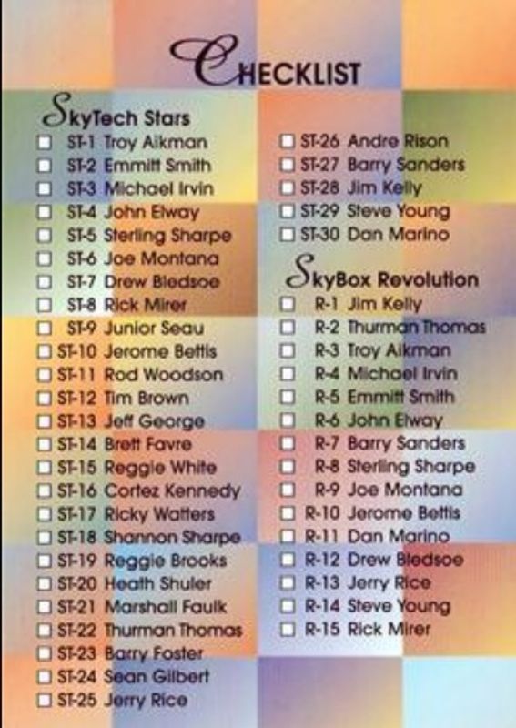 Other popular players in the 1994 Skybox Premium set include Jim Kelly, Jerome Bettis, Joe Montana, Sterling Sharpe, and Thurman Thomas.