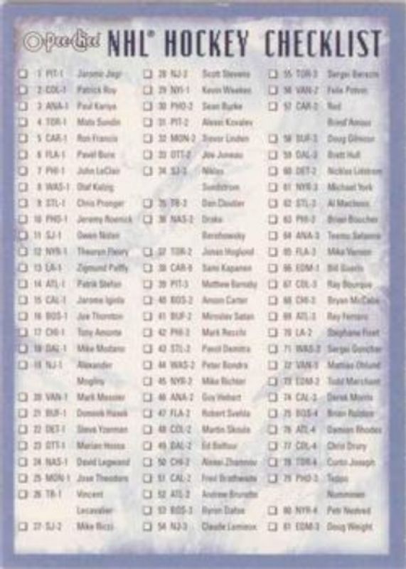 Checklist 2000 O-Pee-Chee #1 Checklists Blue RAW Price Guide