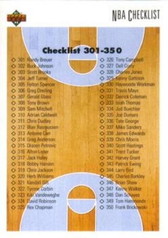 The Checklist (NBA) 1991 Upper Deck #400 Base card is 1 of 10 Checklist (NBA)'s card variations in the 1991 Upper Deck set being tracked by Sports Card Investor, including #100 Base, #100b Base, #200 Base, #300 Base, and #438 Base.