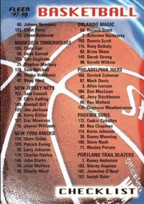 Checklist (NBA) 1997 Fleer #199 Base RAW Price Guide
