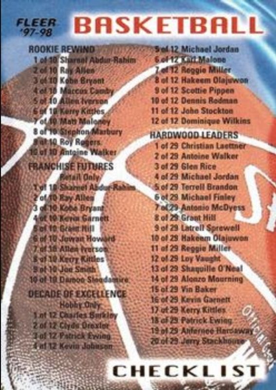 Checklist (NBA) 1997 Fleer #200 Base RAW Price Guide