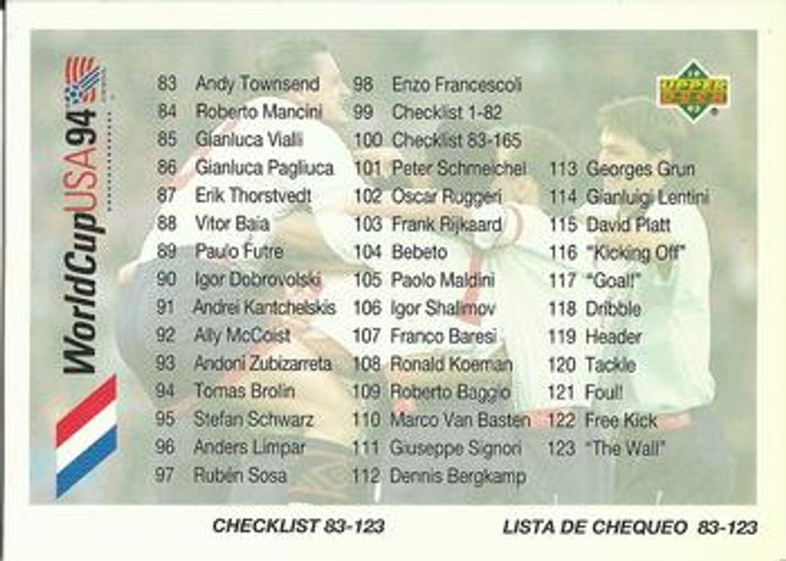 Checklist 1993 Upper Deck World Cup Preview (English/Spanish) #100 Base RAW Price Guide