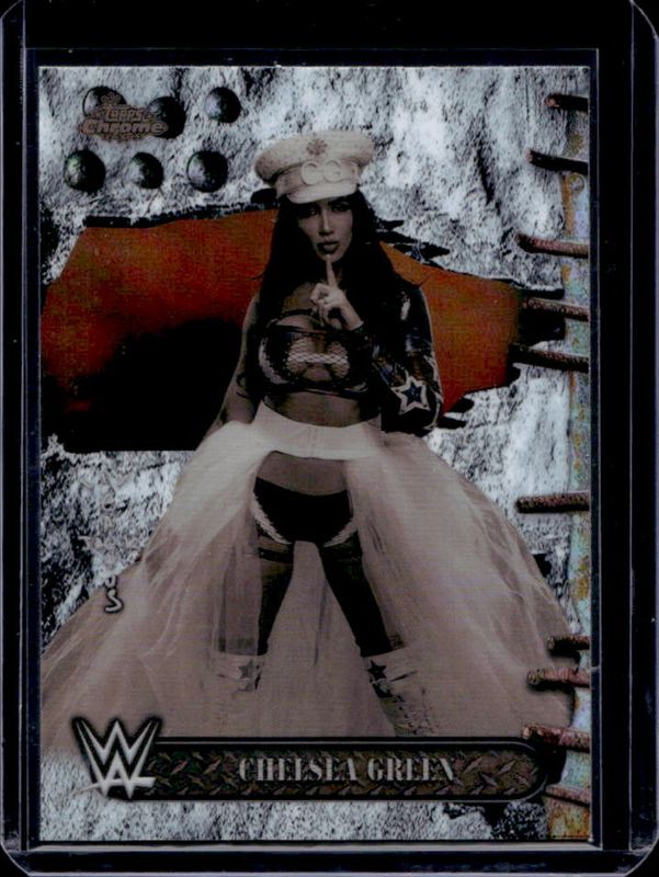The Chelsea Green 2025 Topps Chrome WWE x Cactus Jack #61 White Refractor card is 1 of 46 Chelsea Green's card variations in the 2025 Topps Chrome WWE x Cactus Jack set being tracked by Sports Card Investor, including Base, Black & Yellow Refractor, Red & Black Refractor, Refractor, and Speckle Refractor /299.