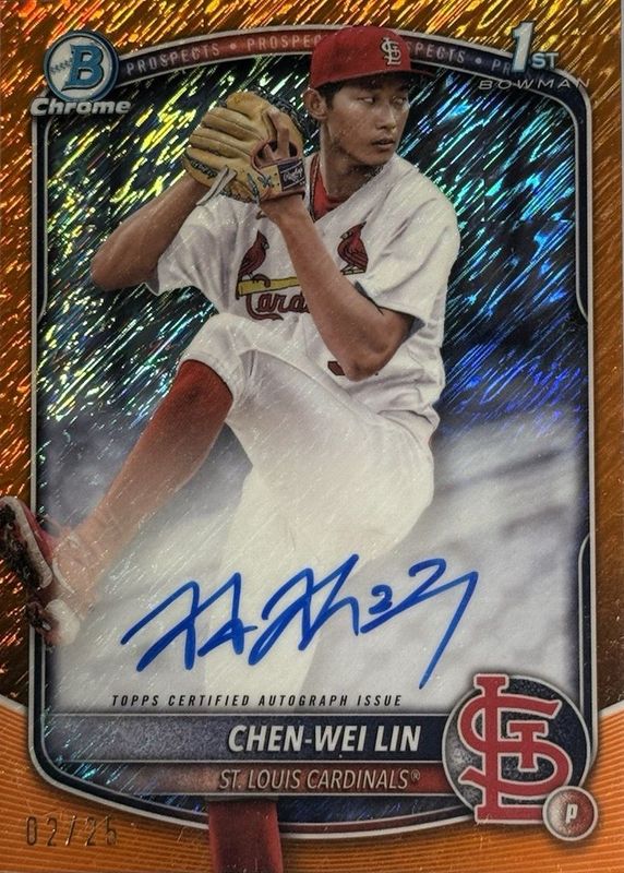 2025 Bowman Baseball Cardinals Chen-Wei Lin 1st Chrome Orange Shimmer Auto/25🔥